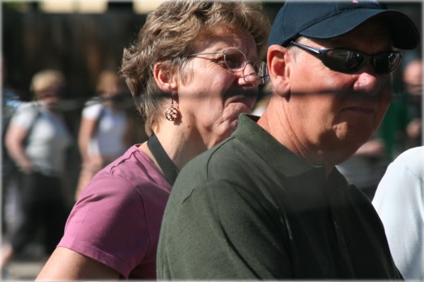 |  Taking it All In | Oct. 8, 2006 AS I left Auschwitz, the original camp, I stopped to study and photograph the reactions of people gathered near the entrance listening to tour guides tell the story. This photo, taken from inside the camp gate looking outward, pretty much sums it up: a combination of disgust and shock. These folks look sixtyish, so what they are hearing about happened in their lifetimes or very close to it. This the thing we need to remember: the Holocaust happened recently, in a society just like ours, where a lot of middle class people wanted to enjoy their lives and not be bothered with the affairs of the government. This is why we need to keep it in mind, and watch to see if any patterns are repeating. One of the framers of the U.S. Constitution once remarked that the time to start worrying is not when all your rights are gone, but rather when the first of them is threatened. I have noticed that it's finally becoming less taboo to "be political," as we figure out that "political" is about OUR lives, our futures. We might want to think of more creative ways to do that, how to raise awareness and how to take action. Tomorrow night we will begin exploring Auschwitz ii - Birkenau, and see if the history of this place, the Nazis' most cherished mass human extermination complex, holds any clues for us today. This series will remain on the cover of PlanetWaves.net and EricFrancis.com for about six more nights. Additional photos are being added to the October cover photo gallery: http://planetwaves.info/gallery2006/index.php?m=10&st=& The full series, in chronological order, is kept here: http://www.planetwaves.net/contents/auschwitz_photo_series.html I'll catch you tomorrow. e | ||||||